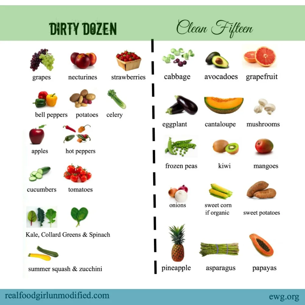 Whole foods refer to the unprocessed and purest form of food. There are diet trends like the zone diet, superfood, and the whole 30. Generally, whole foods are nutrient-dense and the purest of the food. The less processed, the better for your body is my rule of thumb. Whole foods provide you with the nutrients your body needs whether it is fat, protein, or carbohydrates rather than artificial man-made ingredients resembling the texture or flavor of food. You definitely can aim to eat 90% whole foods and 10% processed foods. The 90/10 principle is an easy principle to make healthy eating easy that gives space for cravings to be satisfied. The implementation of this principle can be done by making sure the ingredients are fresh & closest to its pure form. When it comes to produce, some are exposed to more pesticides than others. The image below will show you which produce is better consumed as organic.